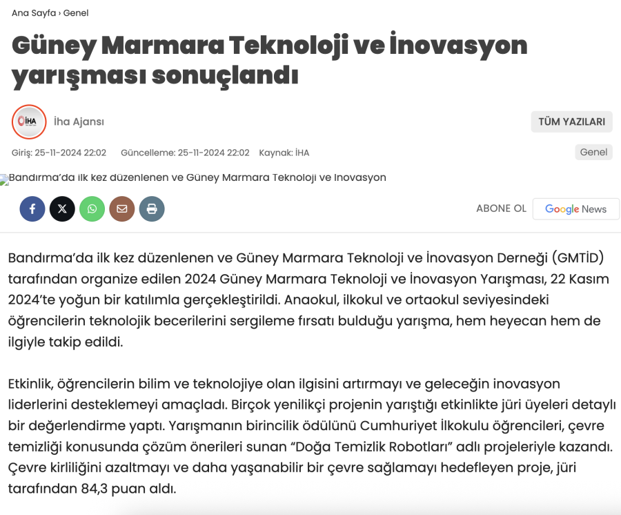 ''Güney Marmara Teknoloji ve İnovasyon yarışması sonuçlandı''